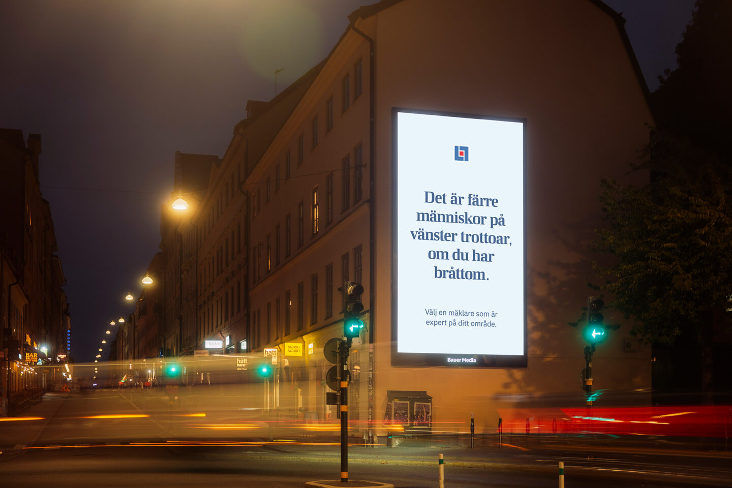 LF Fastighetsförmedling ville stärka sin position som mäklaren med starkast lokal förankring, samt att lyfta expertkunskapen som kommer av att känna ett område, och människorna i det, på riktigt. Genom utomhusannonsering, digitala kanaler, radio och print lyfte vi fram vardagsnära (och lite random) exempel på expertis bara en genuint lokal mäklare kan erbjuda. Allt från parkeringsmöjligheter till fiskmåsar som styr torg.